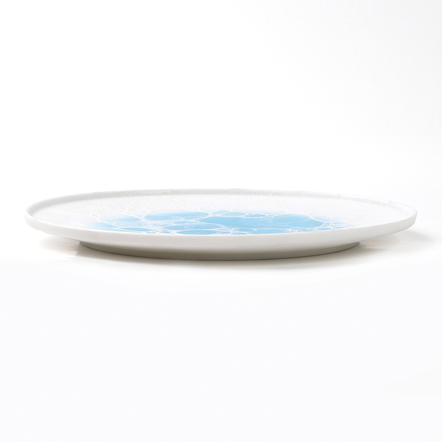 泡のように軽やかで繊細な質感と、澄んだブルーの縁取りが印象的なプレートです。直径16cmの程よいサイズは、取り皿や前菜、デザートなど多用途に使える万能型。磁器とは思えないほどの軽さと滑らかな手触りが特徴で、現代の食卓に調和するモダンな一枚です。洗練された美しさと実用性を兼ね備えた逸品です。