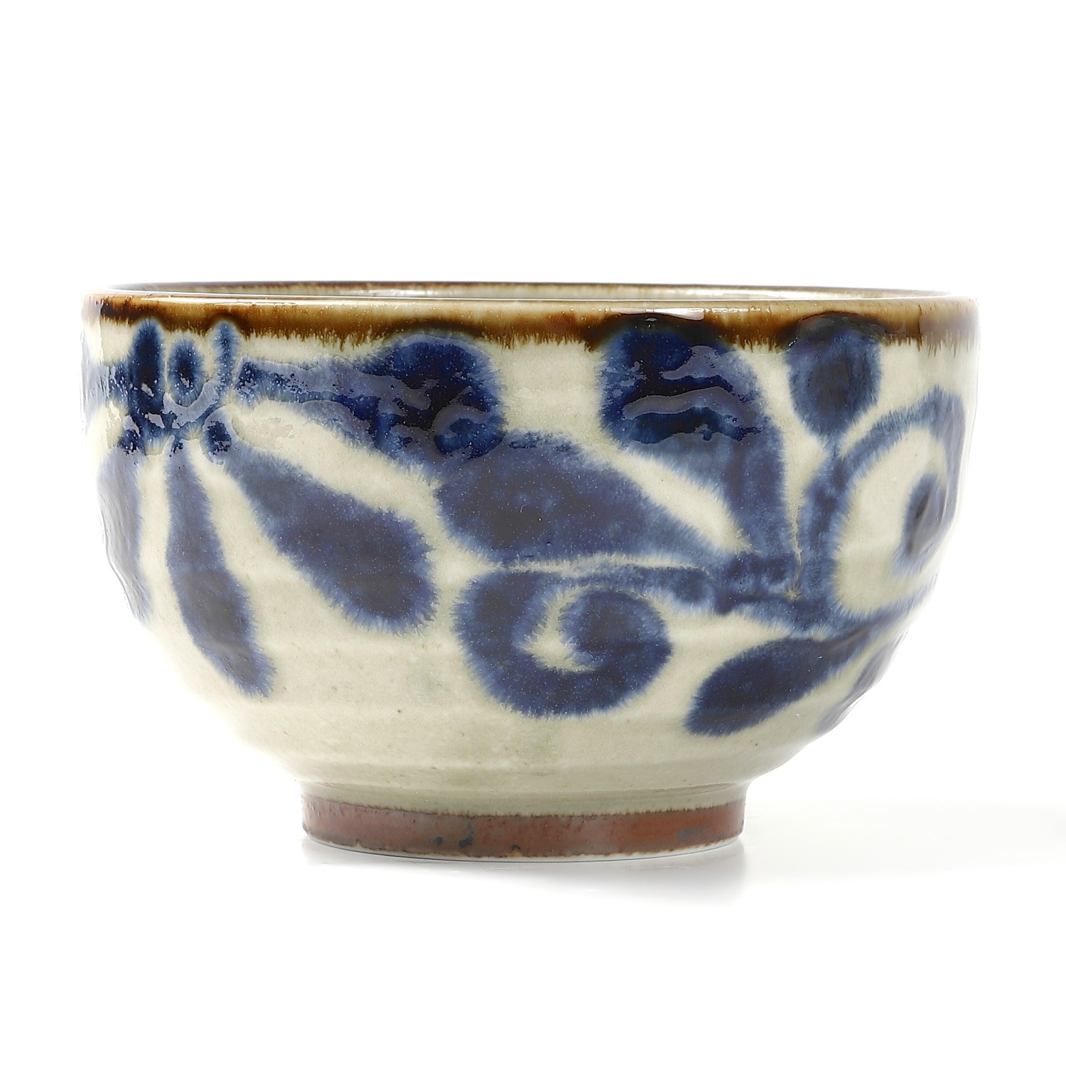 鮮やかな瑠璃色の釉薬に、繊細で流麗な唐草模様が描かれた美しい丼です。直径約12cmの4寸サイズは、ご飯ものや麺類のほか、小鉢としても活躍する万能サイズ。深みのある青と唐草文様の調和が、食卓に華やかさと涼やかさを添えます。普段使いはもちろん、来客用や贈り物にもふさわしい、美濃焼ならではの上品な一品です。