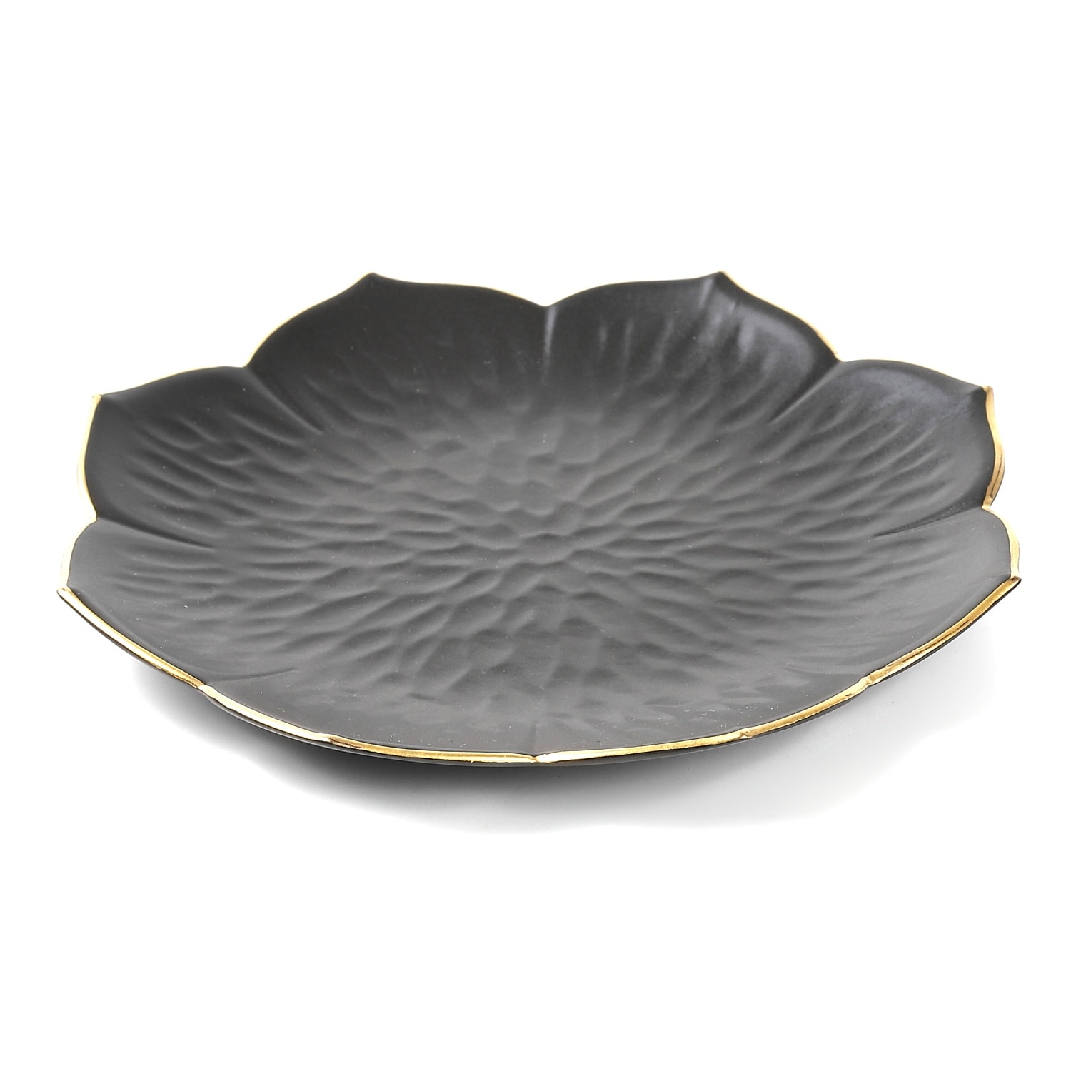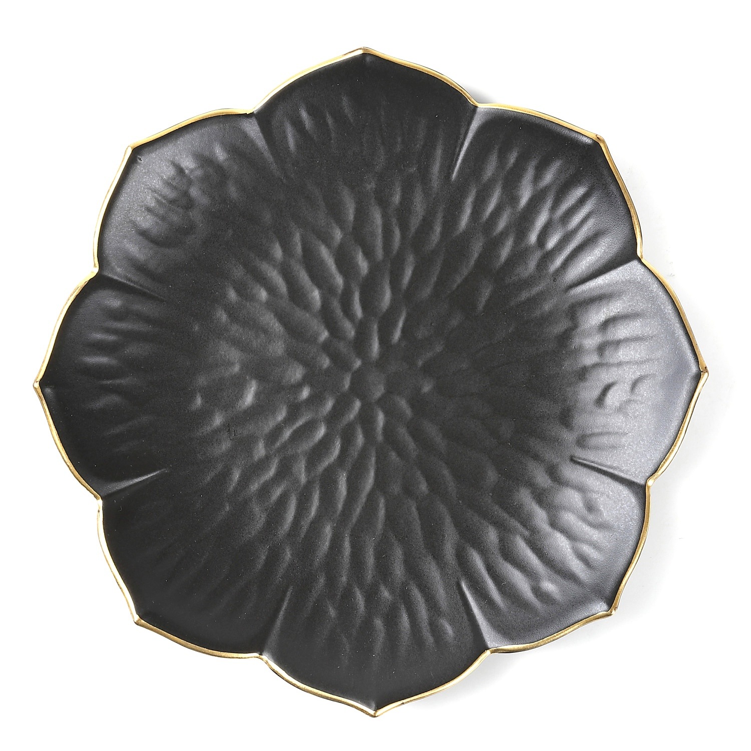 漆黒の釉薬に金彩をあしらい、桔梗の花をかたどった上品な小皿です。漆黒の深みと金の縁取りが料理を華やかに引き立て、和菓子や前菜、取り皿として幅広く活躍。桔梗形のフォルムが食卓に優雅な印象を与え、特別な日のおもてなしにも最適です。有田焼ならではの格調高い美と実用性を兼ね備えた逸品です。